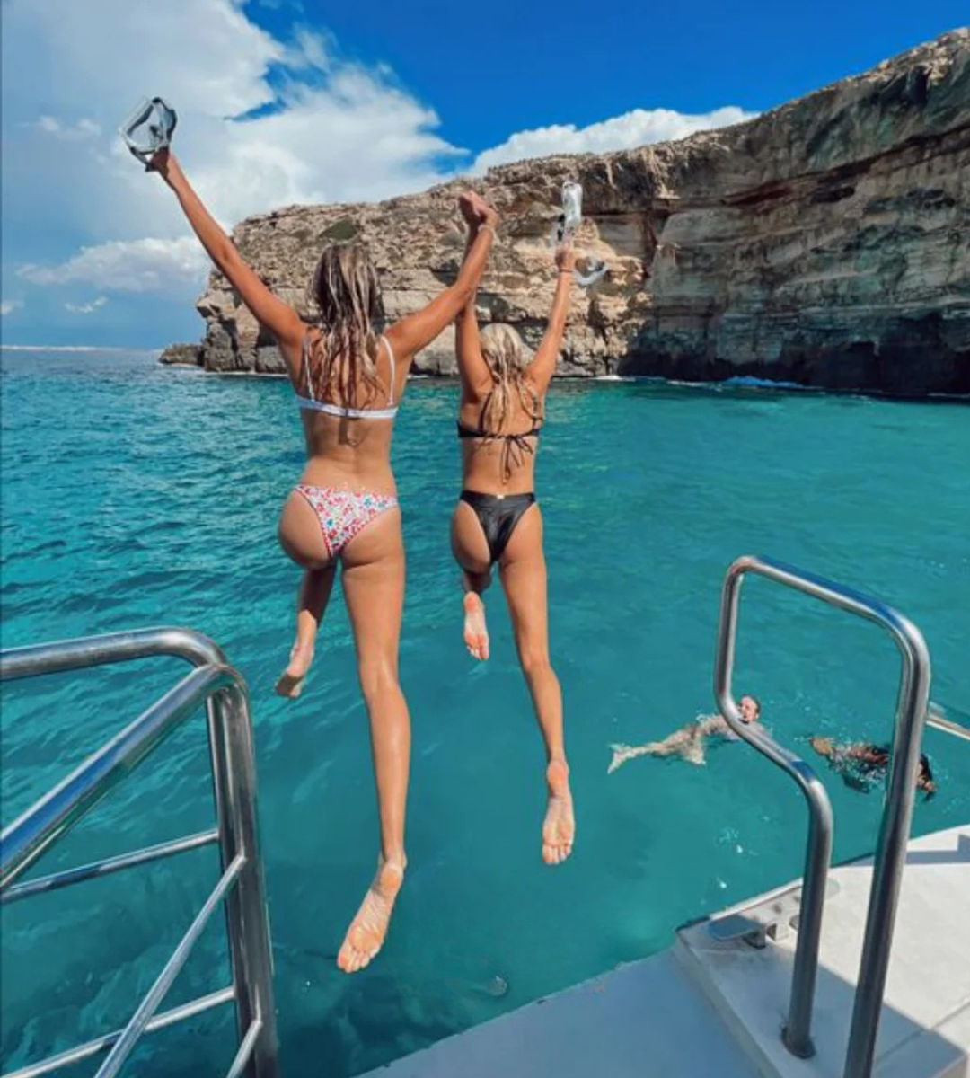 ๐ Durante la festa faremo una sosta esclusiva in una cala segreta per unโora: acqua cristallina, tuffi e relax sotto il sole di Ibiza.
